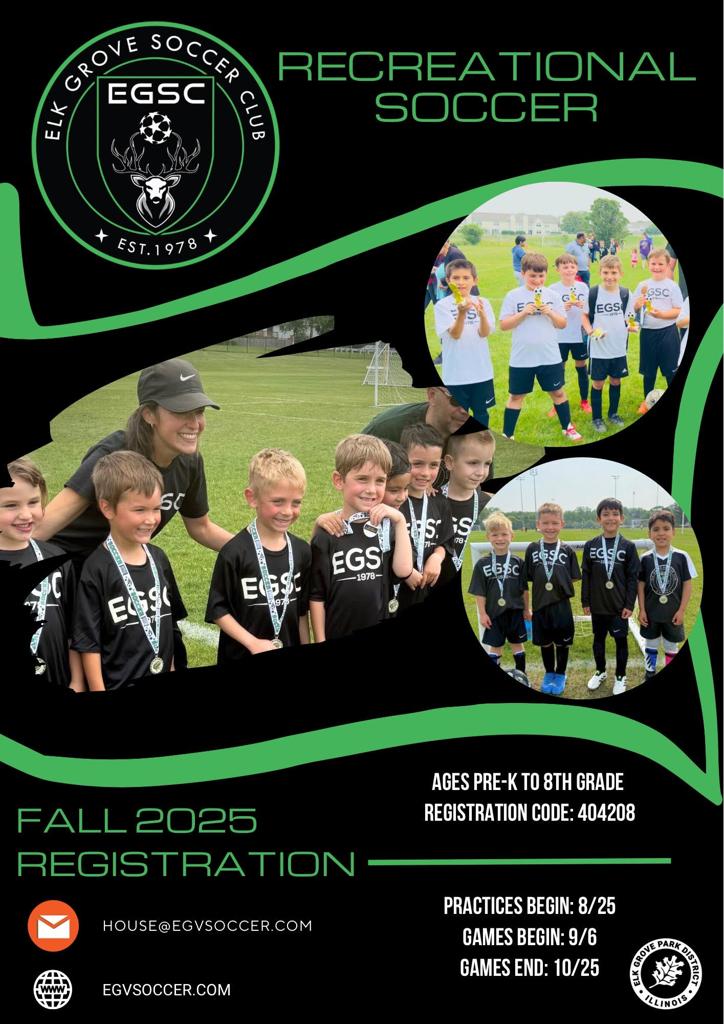 2024 Fall Recreational Soccer registration is open. Please use registration code 404208.